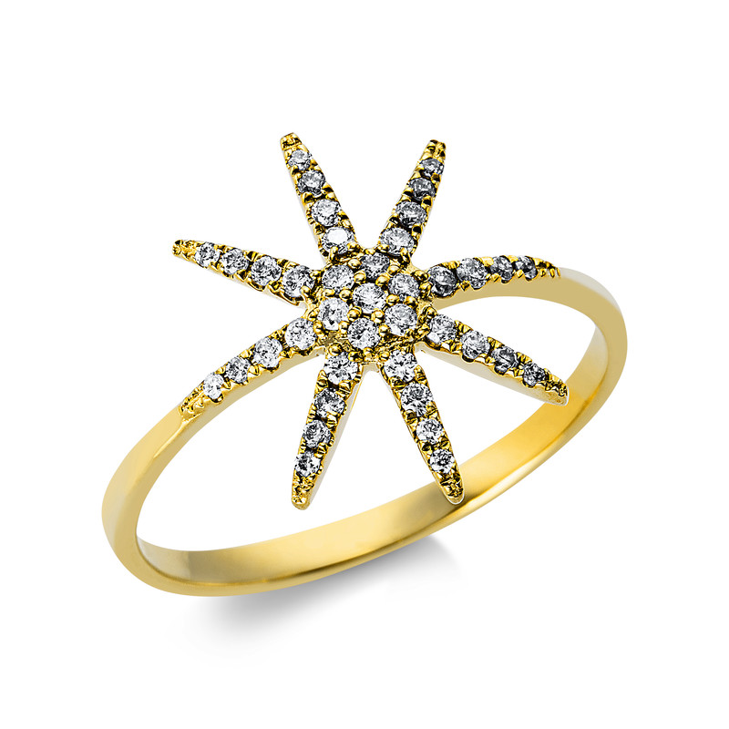 ring 14 kt YG, 39 diamonds 0,19 ct, G-si, width:55