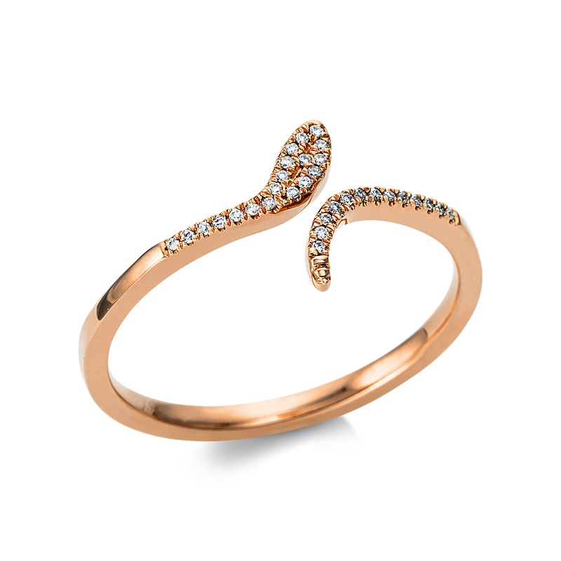 ring 18 kt RG "Snake", 32 diamonds 0,04 ct, G-si, w:9,1 mm, width:54