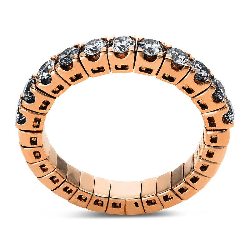 ring 18 kt RG, flex-band, variable, 11 diamonds 1,13 ct, brown, width:53