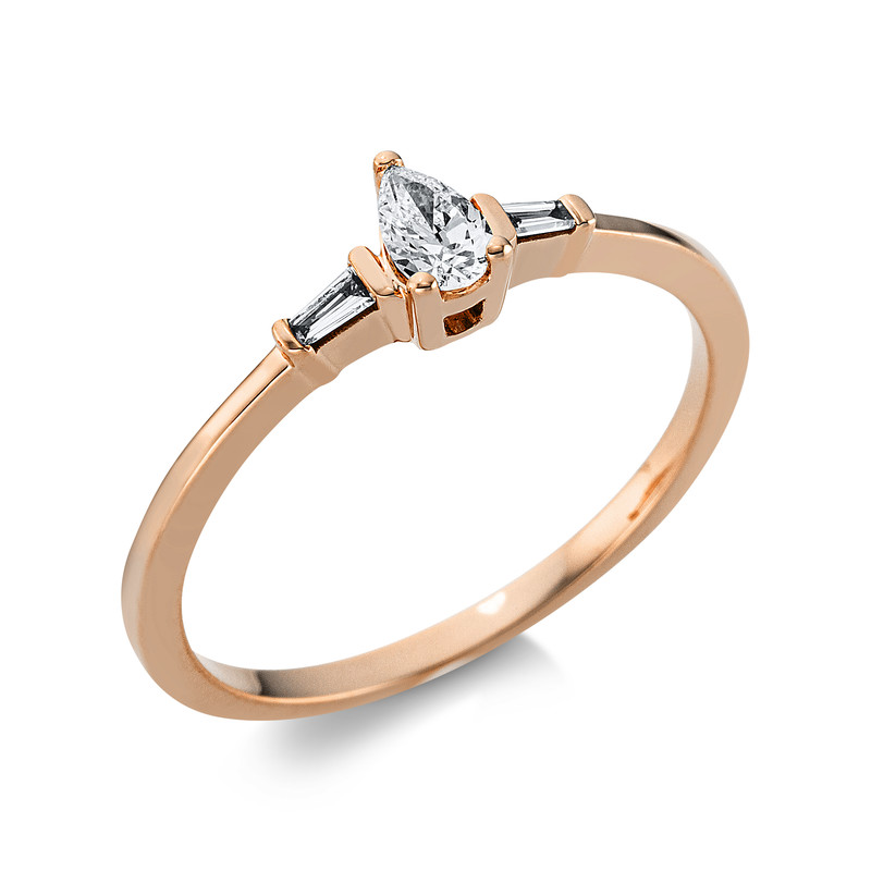 ring 18 kt RG "pear", 1 pear 0,16 ct, G-si, 2 tapers 0,04 ct, G-si, width:54