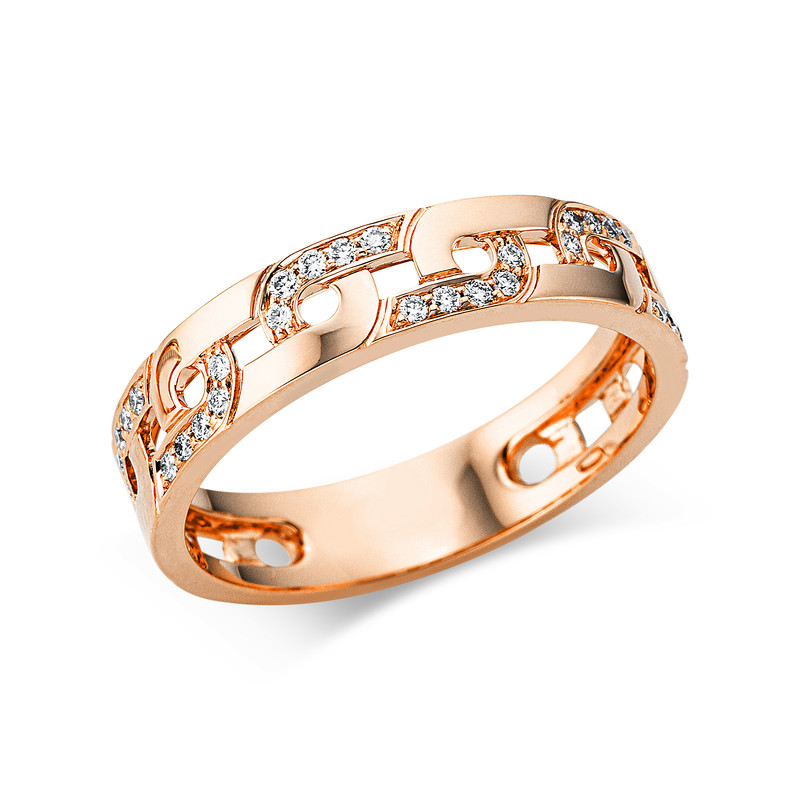 ring 18 kt RG, 30 diamonds 0,13 ct, G-si, w:4,5 mm, width:54
