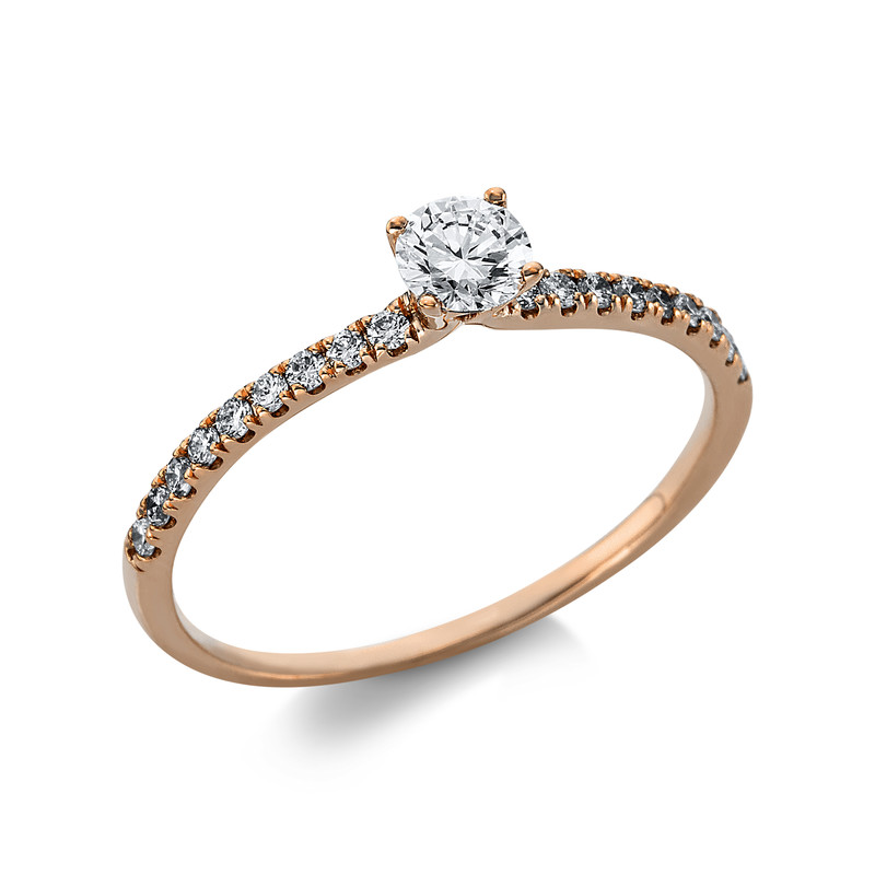 ring 18 kt RG, 1 diamond 0,24 ct, G-si, 18 diamonds 0,16 ct, G-si, width:54