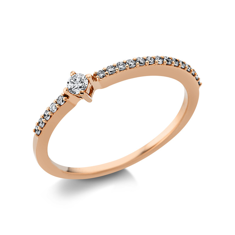 ring 18 kt RG, 19 diamonds 0,12 ct, G-vsi, 1 diamond 0,06 ct, G-vsi, width:53