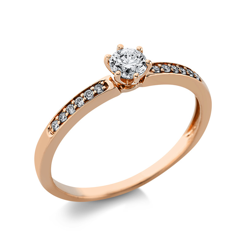 ring 18 kt RG, 1 diamond 0,24 ct, G-si, 12 diamonds 0,07 ct, G-si, width:54