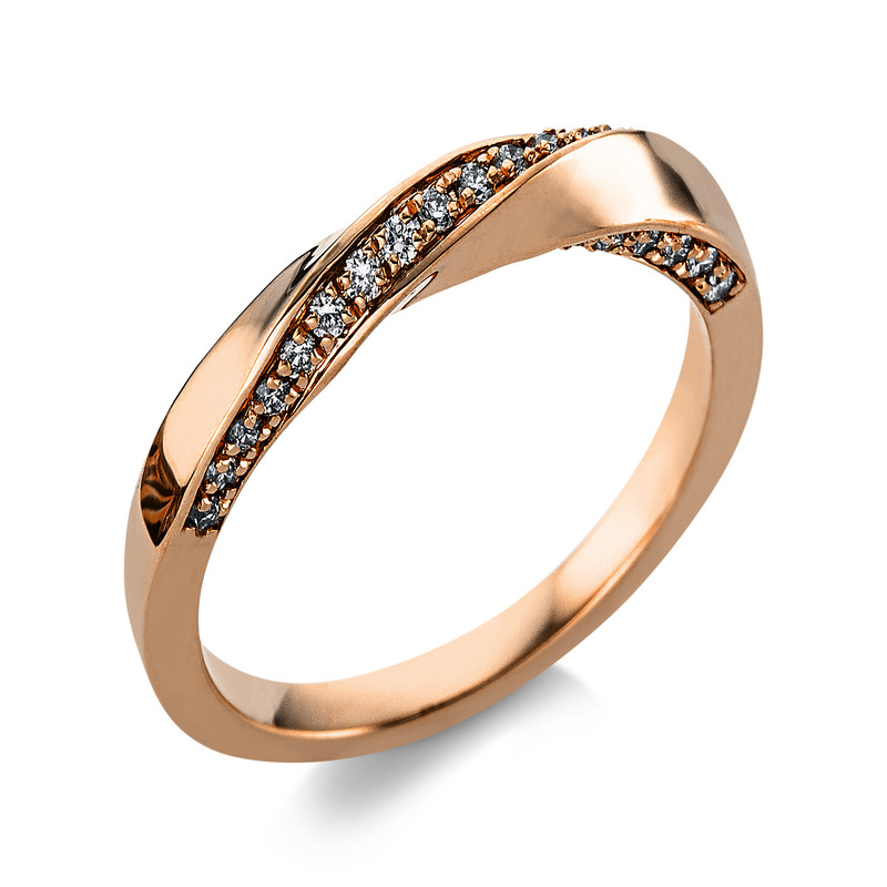 ring 18 kt RG, 30 diamonds 0,22 ct, G-si, w:2,9 mm, width:54