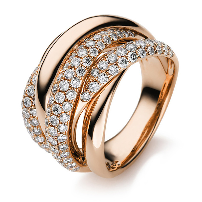 ring 18 kt RG, 110 diamonds 1,46 ct, G-si, width:54