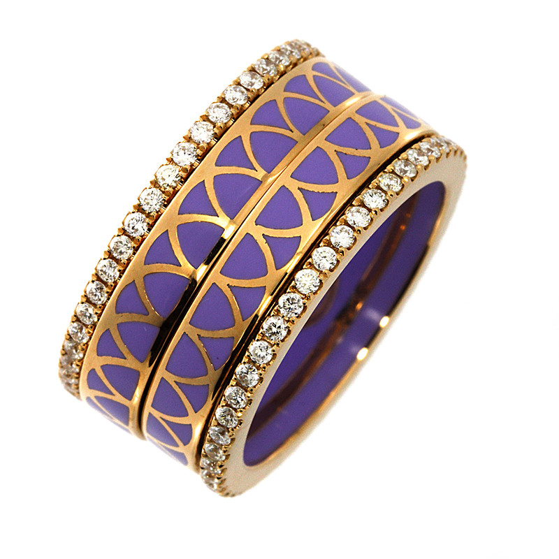 ring 18 kt RG, 94 diamonds 0,84 ct, G-vsi/si, enamel, w:10,7 mm, width:54