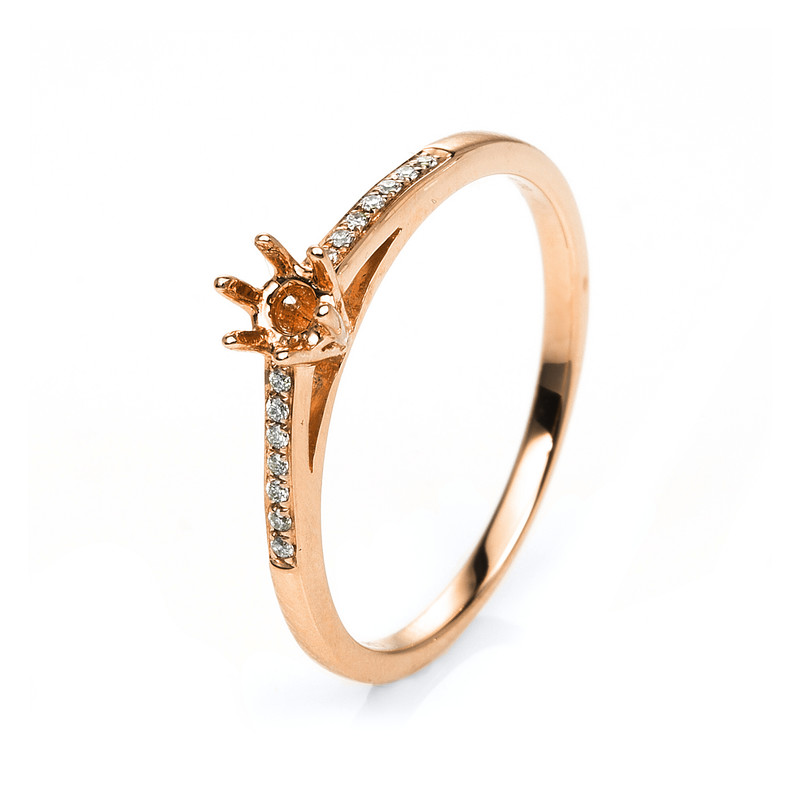 ring 18 kt RG, 14 diamonds 0,06 ct, G-si, mounting for 1x diamond 0,15 ct, width:54