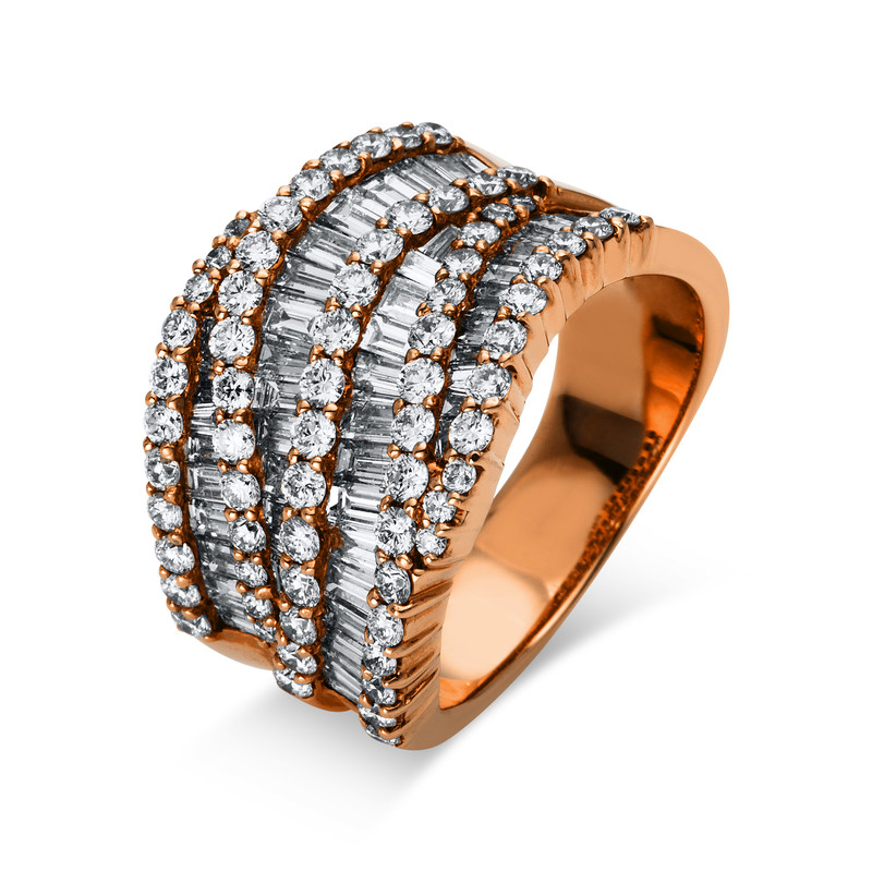 ring 18 kt RG, 49 tapers 166,00 ct, G-vsi/si, 69 diamonds 1,20 ct, G-vsi/si, width:54