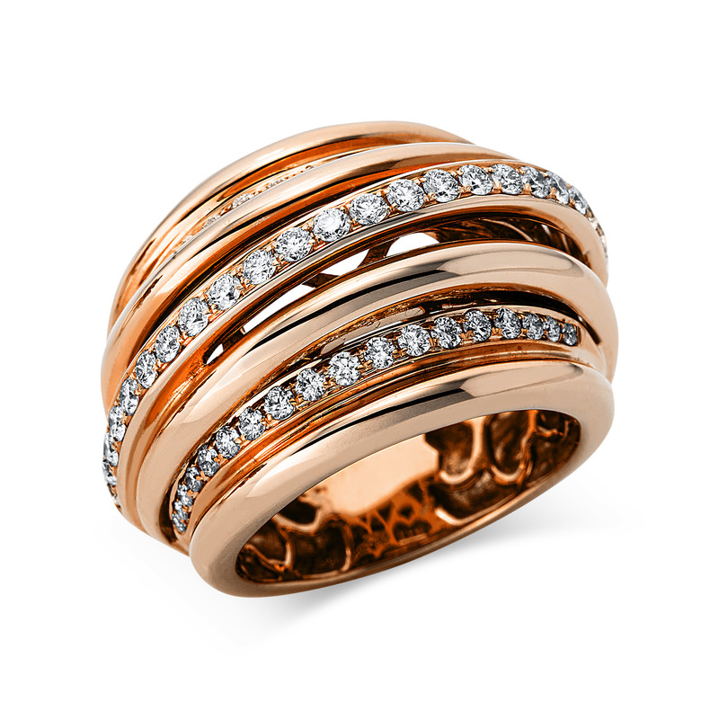 ring 18 kt RG, 60 diamonds 0,93 ct, G-si, w:16,9 mm, width:53