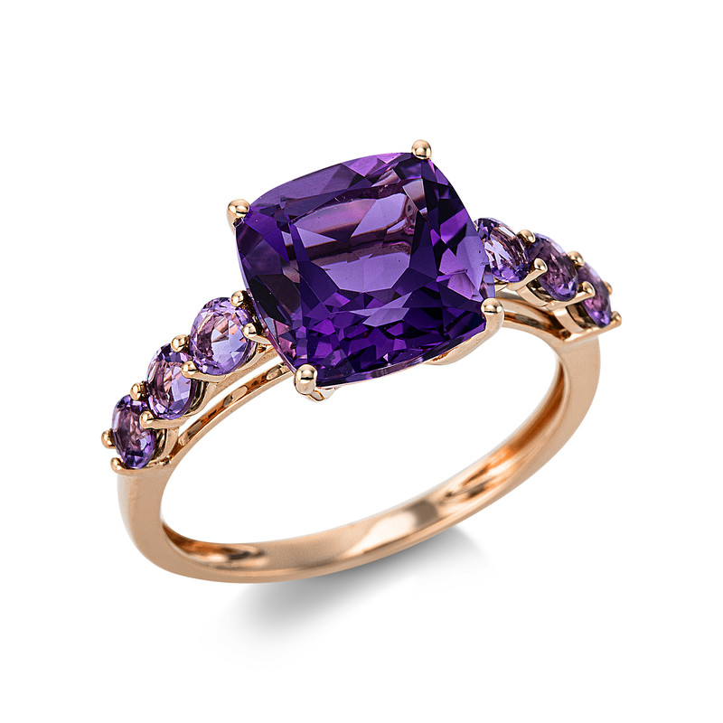 ring 18 kt RG, 1 amethyst 3,10 ct lilac, 6 amethysts 0,60 ct lilac, width:54