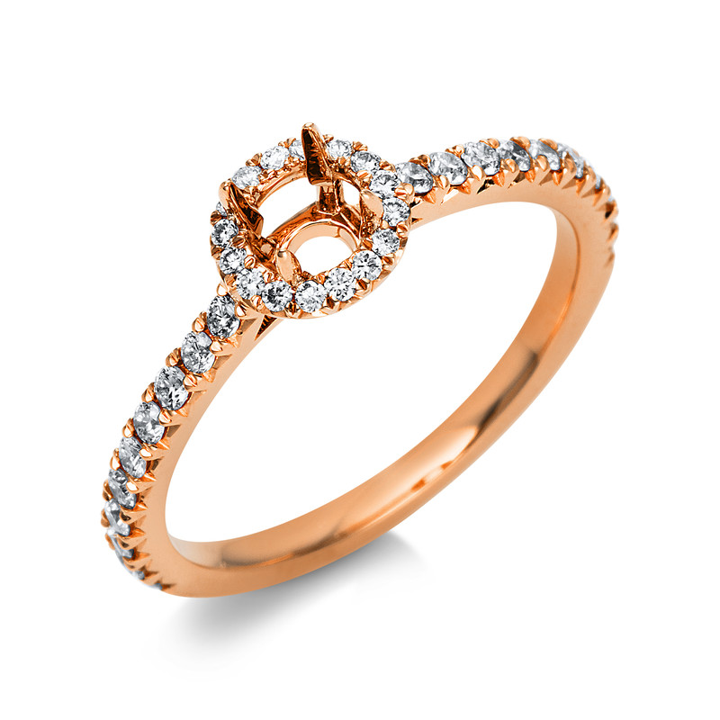 ring 18 kt RG, 36 diamonds 0,35 ct, G-si, mounting for 1x diamond 0,30 ct, width:54