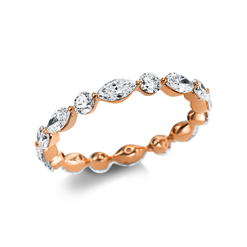 ring 18 kt RG, 8 marquise 1,12 ct, G-vsi, 8 diamonds 0,69 ct, G-vsi, w:2,9 mm, width:53