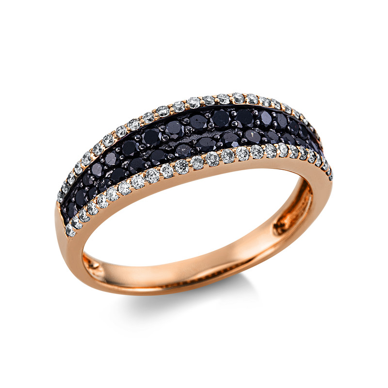 ring 18 kt RG, 50 diamonds 0,27 ct, G-vsi/si, 30 diamonds 0,46 ct, black, width:54