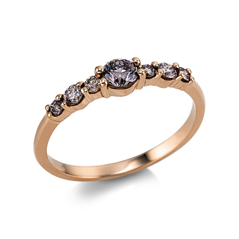 ring 18 kt RG, 7 diamonds 0,45 ct, brown, h:3,8 mm, width:53
