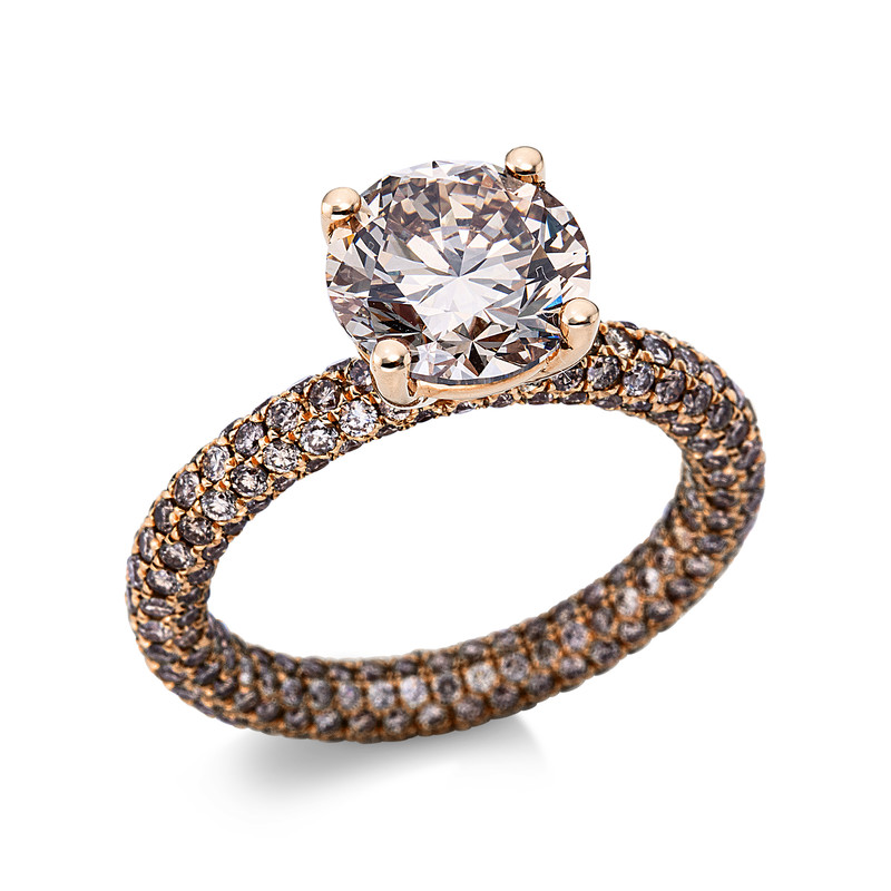 ring 18 kt RG, 1 diamond 2,53 ct, brown, 308 diamonds 2,35 ct, brown, width:52