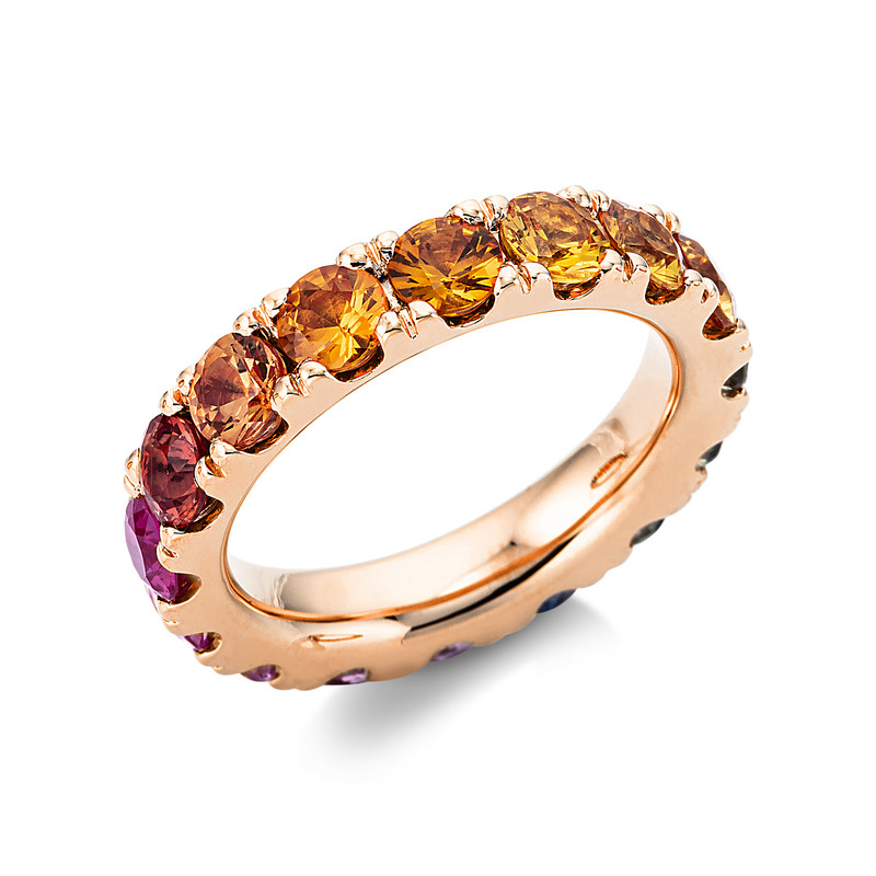 ring 18 kt RG, 16 sapphire 5,13 ct fancy, w:4,4 mm, width:54