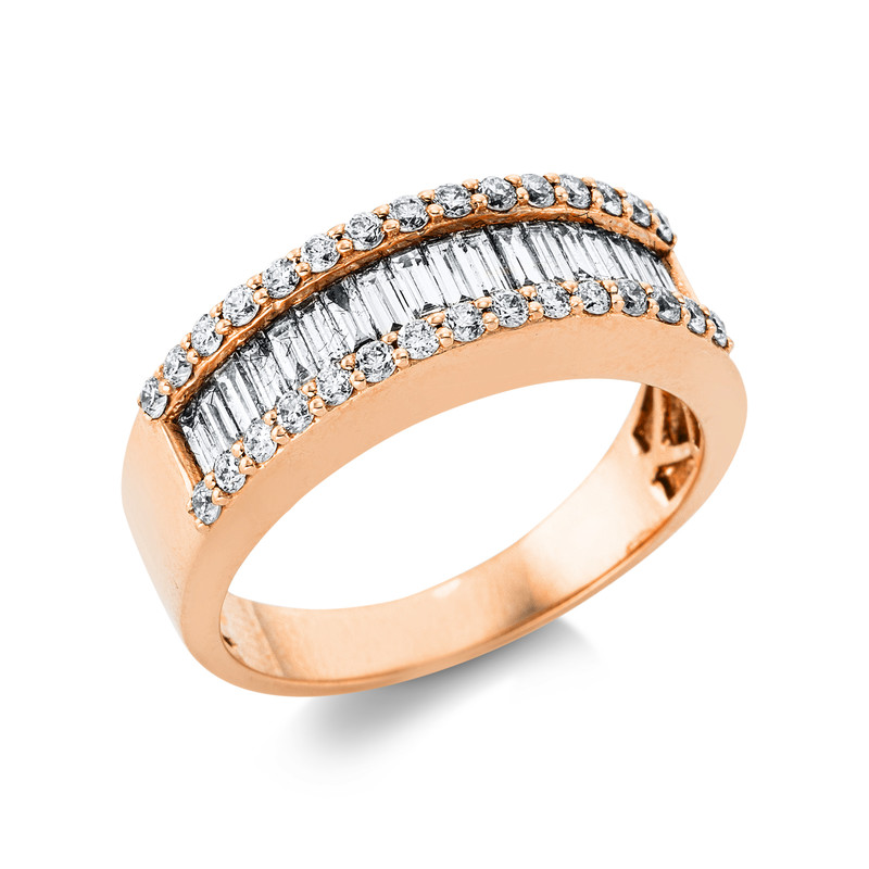 ring 18 kt RG, 18 baguette 0,58 ct, G-si, 30 diamonds 0,39 ct, G-si, width:54