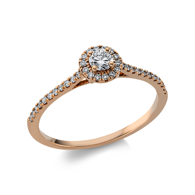 ring 18 kt RG, 14 diamonds 0,05 ct, G-si, 1 diamond 0,15 ct, G-si, 22 diamonds 0,10 ct, G-si, Ø:6,0 mm, width:54