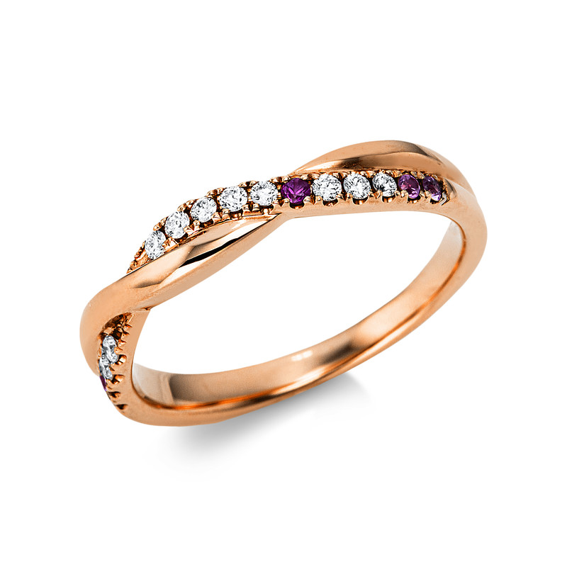 ring 18 kt RG, 10 diamonds 0,08 ct, G-pi, 5 sapphire 0,05 ct pink, width:49