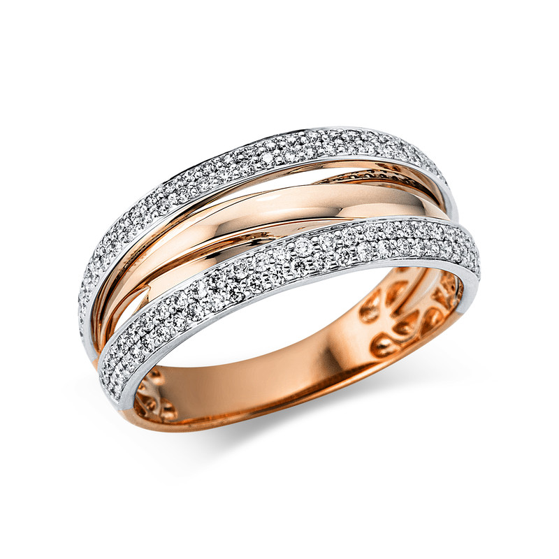 ring 18 kt RG+WG, 118 diamonds 0,44 ct, G-si, w:8,4 mm, width:54