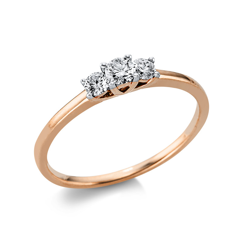 ring 18 kt RG+WG, 1 diamond 0,13 ct, G-si, 2 diamonds 0,14 ct, G-si, w:3,2 mm, width:54