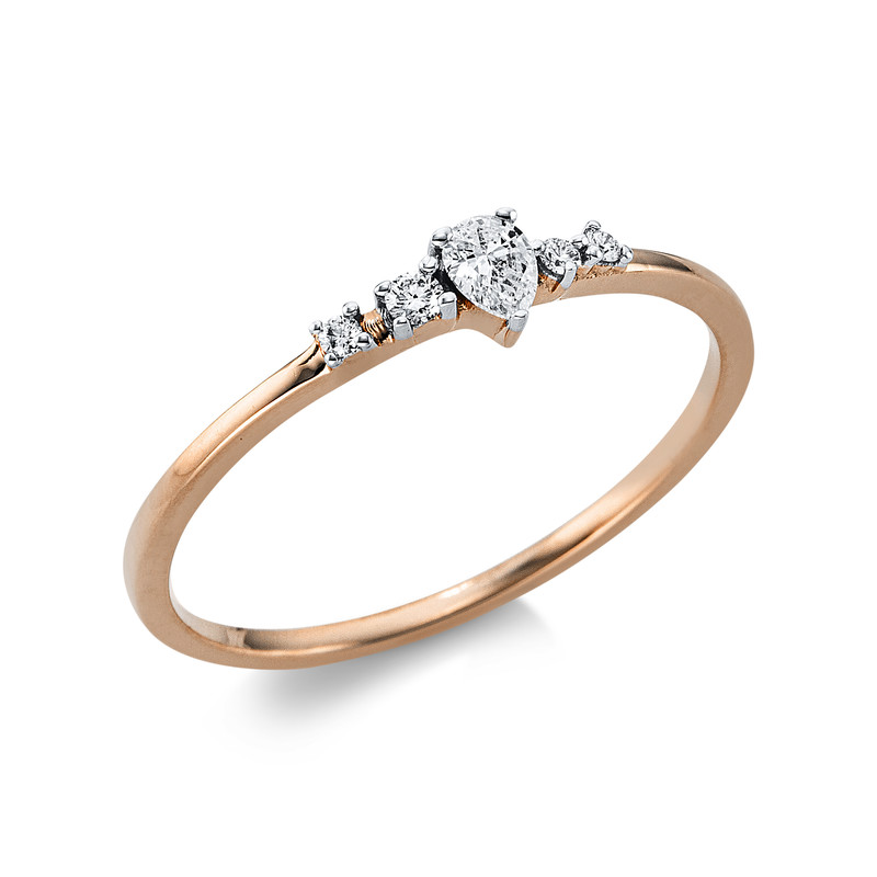 ring 18 kt RG+WG, 1 pear 0,08 ct, G-si, 4 diamonds 0,04 ct, G-si, w:3,6 mm, width:54