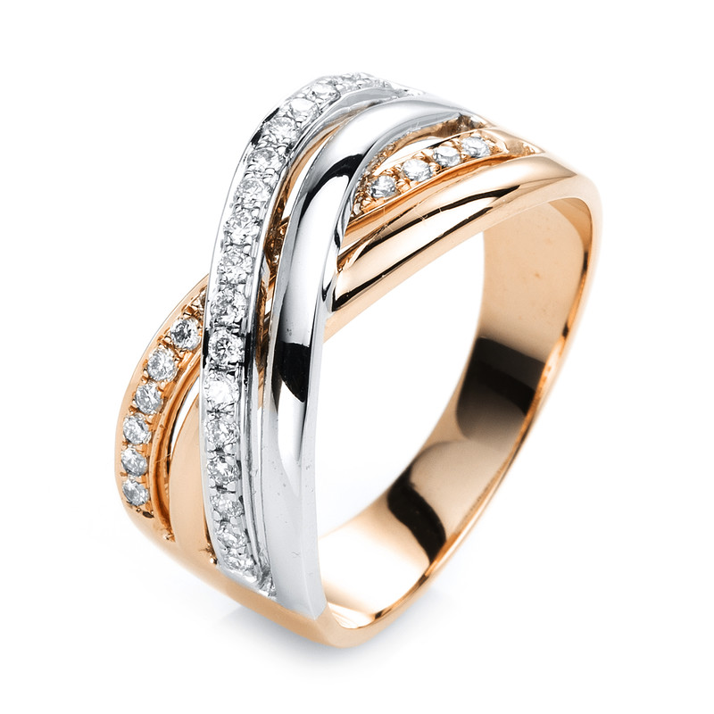 ring 18 kt RG+WG, 32 diamonds 0,30 ct, G-si, w:9,5 mm, width:54
