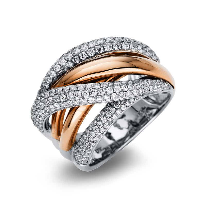 ring 18 kt RG+WG, 174 diamonds 1,26 ct, G-vsi, width:55