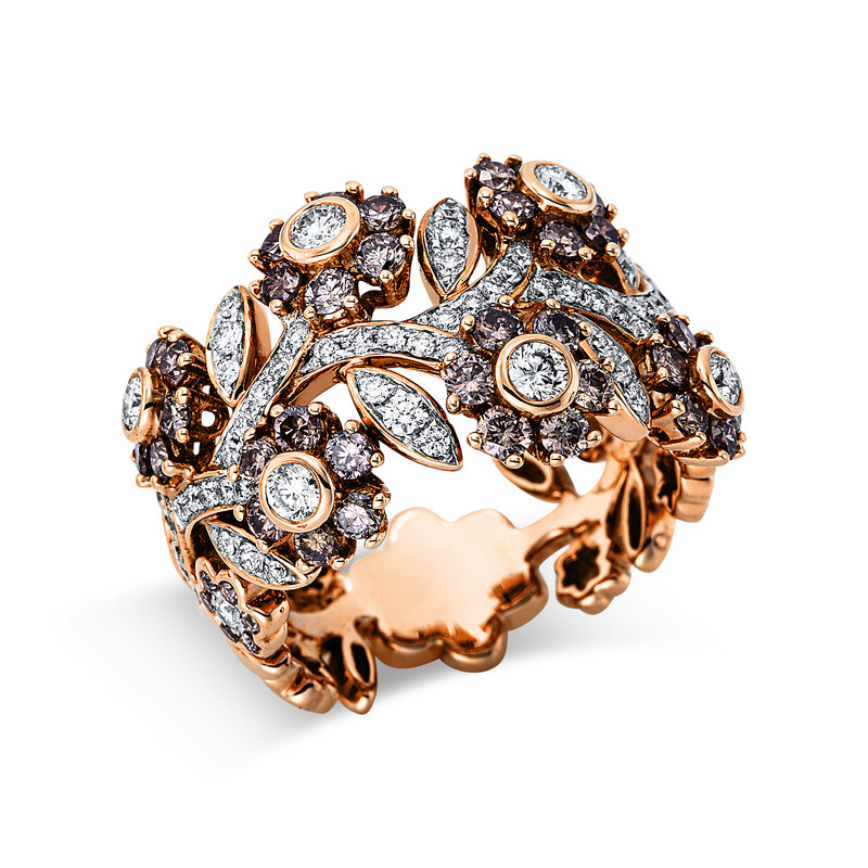 ring 18 kt RG+WG, 71 diamonds 0,68 ct, G-vsi, 48 diamonds 1,16 ct, brown, width:53