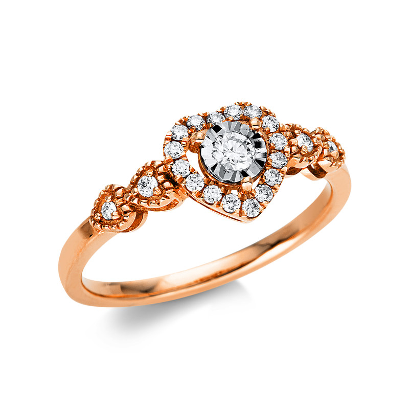 ring 18 kt RG+WG, 1 diamond 0,08 ct, G-si, 20 diamonds 0,16 ct, G-si, width:55
