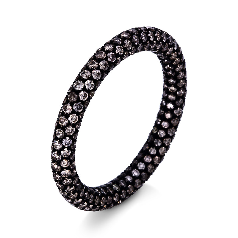 ring 18 kt WG, black rhodium plated, 338 diamonds 1,92 ct, brown, width:54