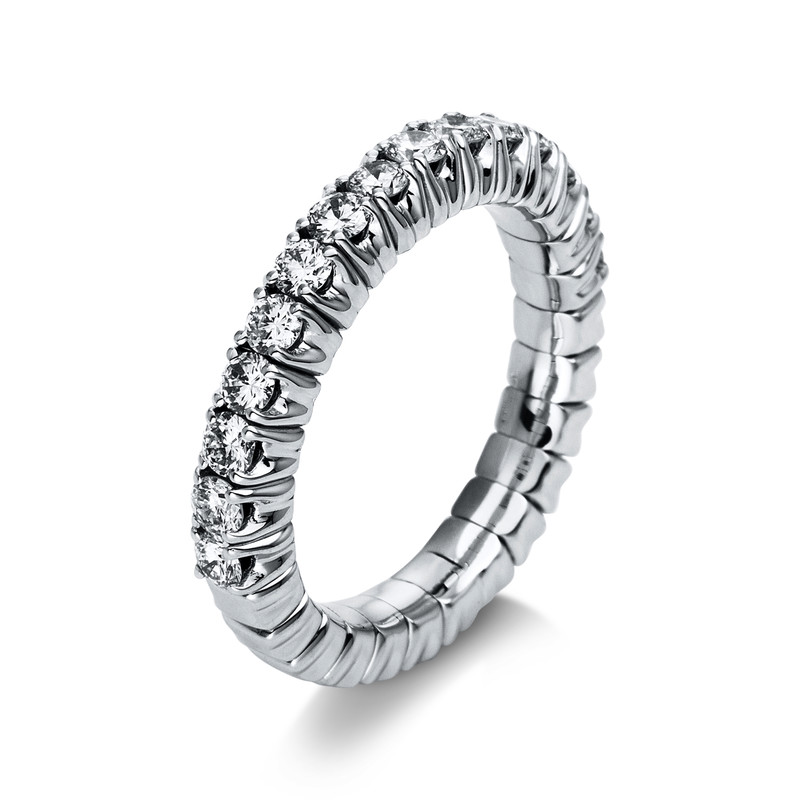 ring 18 kt WG, flex-band, variable, rhod.pla, 15 diamonds 0,68 ct, G-si, width:54