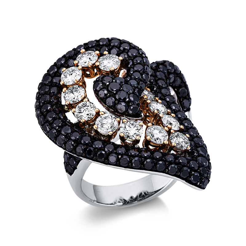 ring 18 kt WG, setting black rhodium plated, 14 diamonds 2,23 ct, G/H-vsi/si, 168 diamonds 3,94 ct, black, width:54