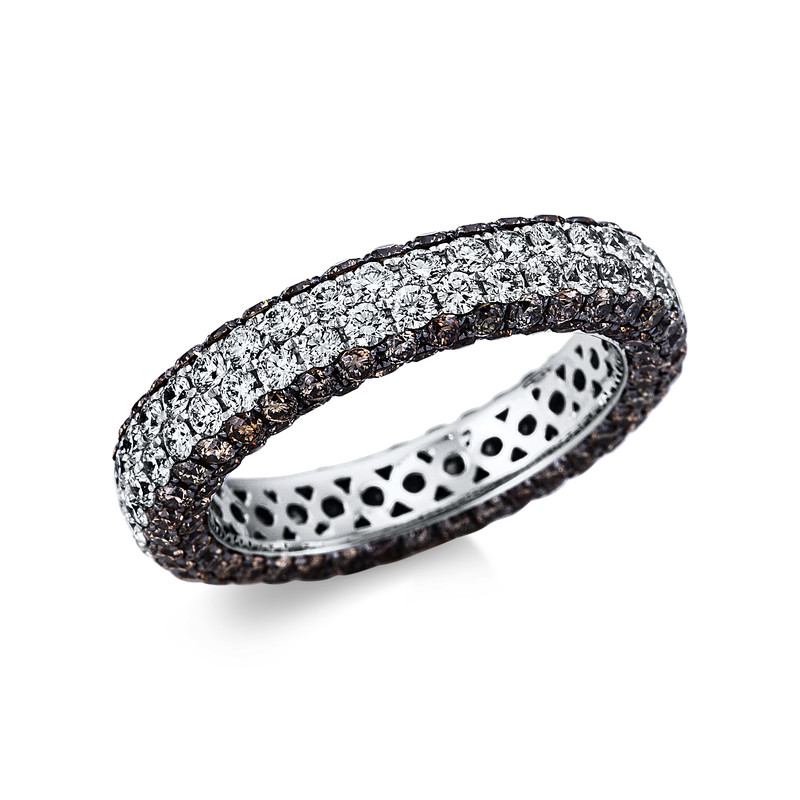 ring 18 kt WG, setting black rhodium plated, 76 diamonds 1,43 ct, G-vsi, 152 diamonds 2,02 ct, brown, width:53