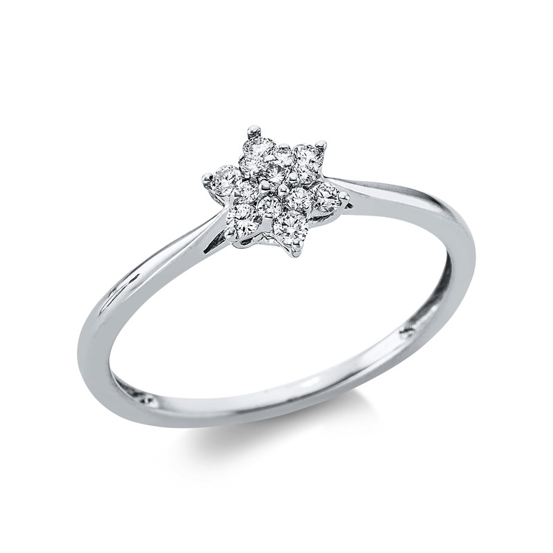 ring 18 kt WG "star", 13 diamonds 0,16 ct, G-si, width:54