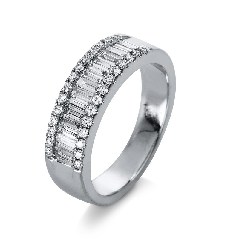 ring 18 kt WG, 17 baguette 0,37 ct, G-si, 28 diamonds 0,20 ct, G-si, width:53