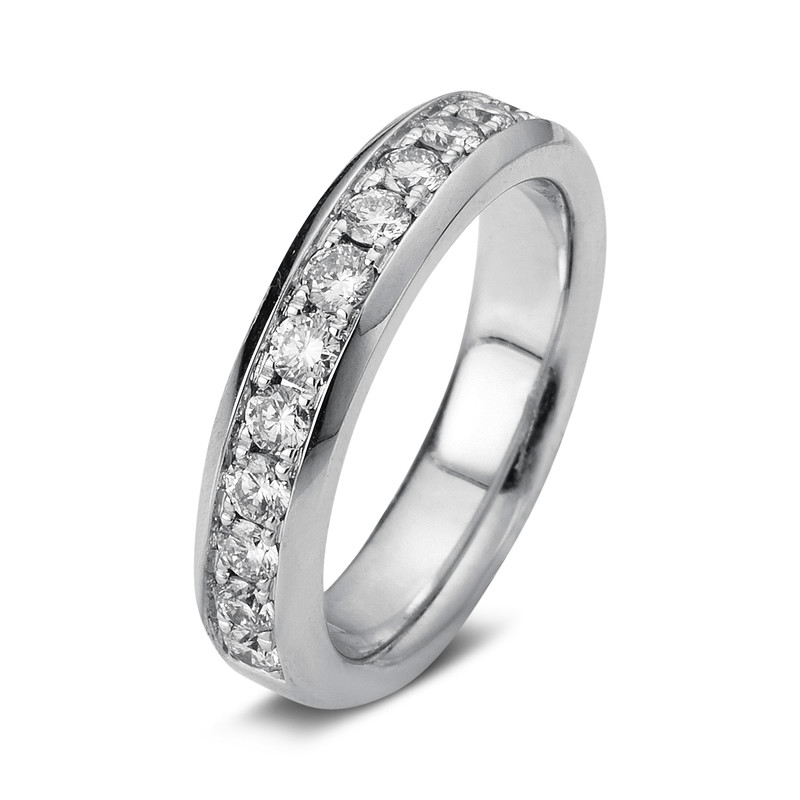 ring 18 kt WG, 13 diamonds 0,73 ct, G-si, w:4,9 mm, width:54