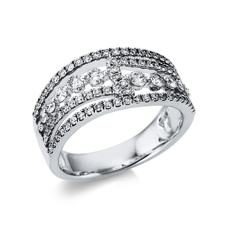ring 18 kt WG, 6 diamonds 0,17 ct, F-vsi, 76 diamonds 0,48 ct, F-vsi, 4 diamonds 0,23 ct, F-vsi, width:54