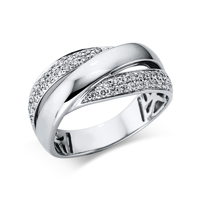 ring 18 kt WG, 48 diamonds 0,39 ct, G-si, w:9,3 mm, width:54