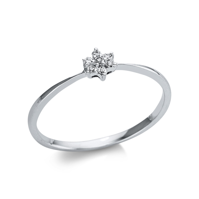 ring 18 kt WG, 7 diamonds 0,05 ct, G-si, w:4,4 mm, width:54