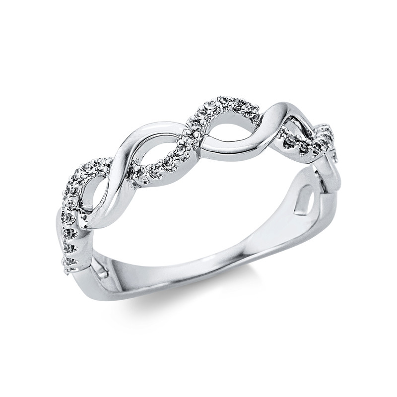 ring 18 kt WG, 33 diamonds 0,12 ct, G-si, w:4,1 mm, width:54