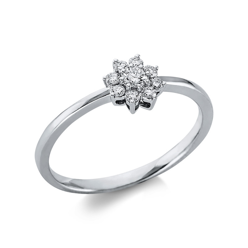 ring 18 kt WG, 1 diamond 0,07 ct, G-si, 8 diamonds 0,13 ct, G-si, Ø:6,6 mm, width:54