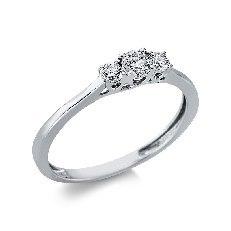 ring 18 kt WG, 1 diamond 0,14 ct, G-si, 2 diamonds 0,13 ct, G-si, width:54