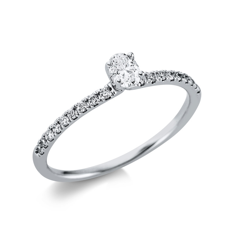 ring 18 kt WG, 1 oval 0,19 ct, G-si, 18 diamonds 0,15 ct, G-si, width:54