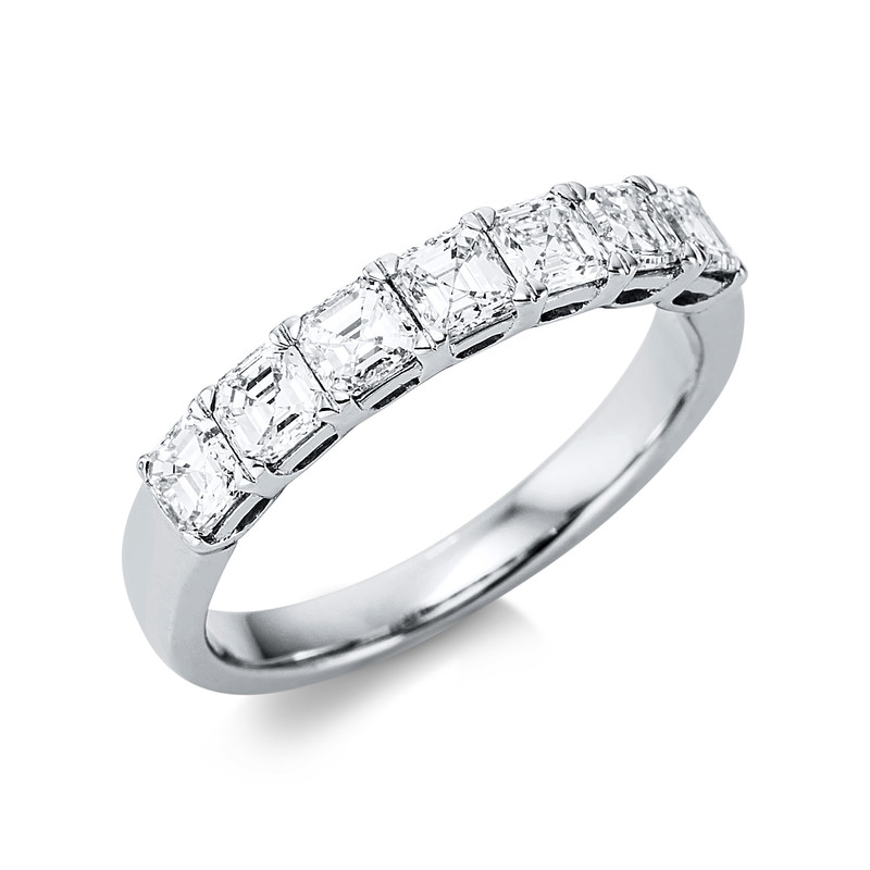 ring 18 kt WG, 7 assher cut 1,23 ct, G-vsi, width:54