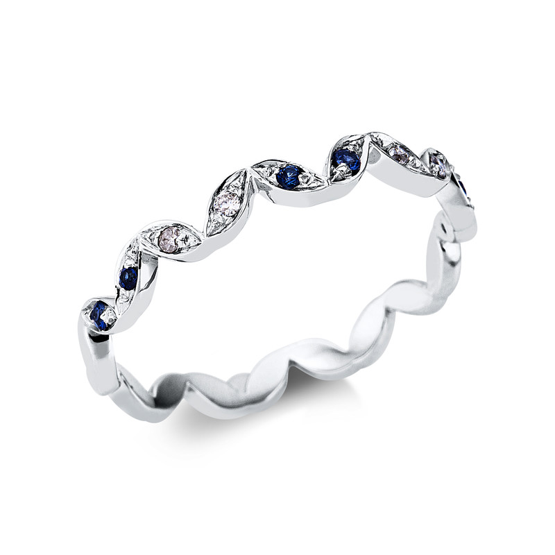 ring 18 kt WG, 4 diamonds 1,63 ct, I-si, 6 sapphire 0,07 ct blue, width:53