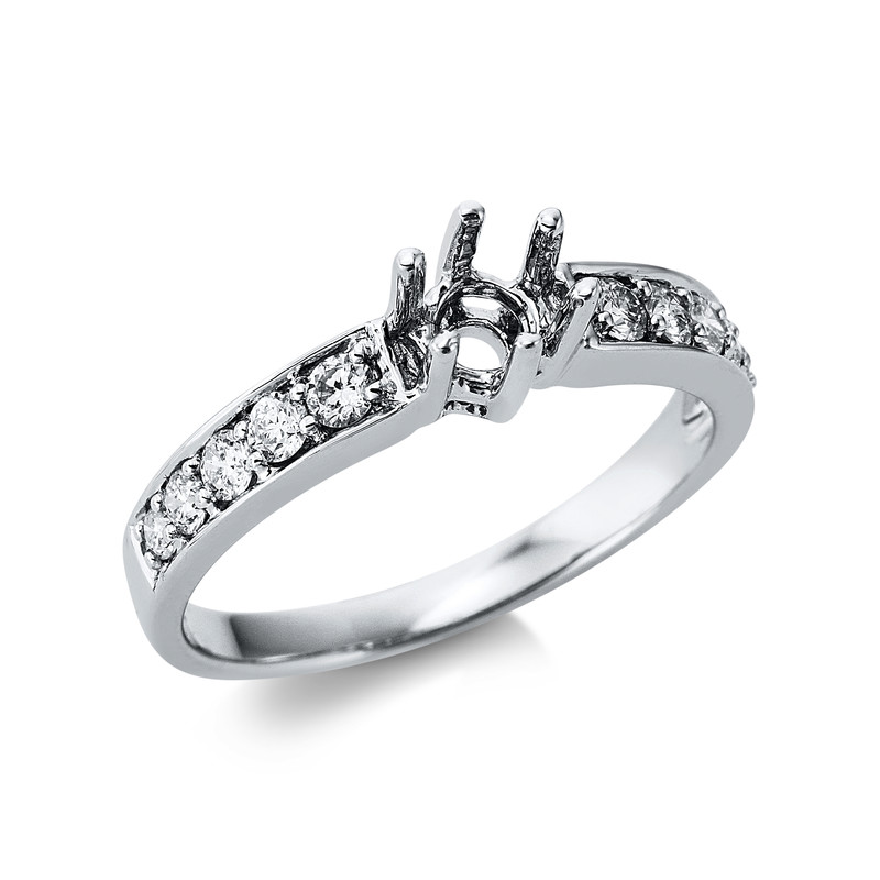 ring 18 kt WG, 10 diamonds 0,38 ct, G-si, mounting for 1x diamond 0,30 ct, width:53