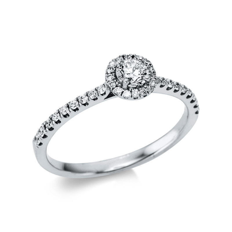 ring 18 kt WG, 1 diamond 0,21 ct, G-si, 34 diamonds 0,21 ct, G-si, width:53
