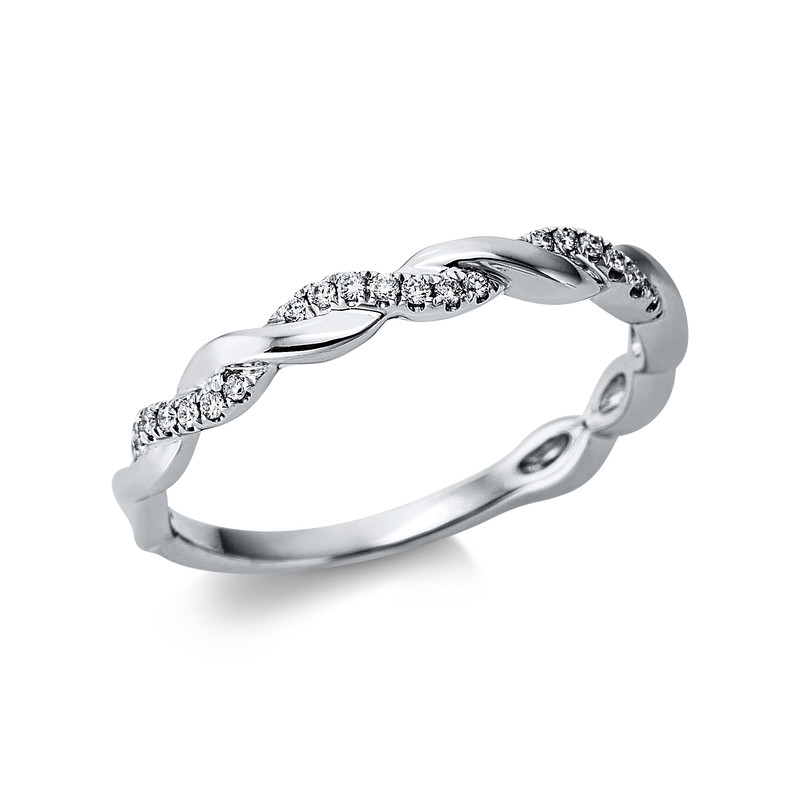 ring 18 kt WG, 28 diamonds 0,11 ct, G-si, w:2,6 mm, width:53